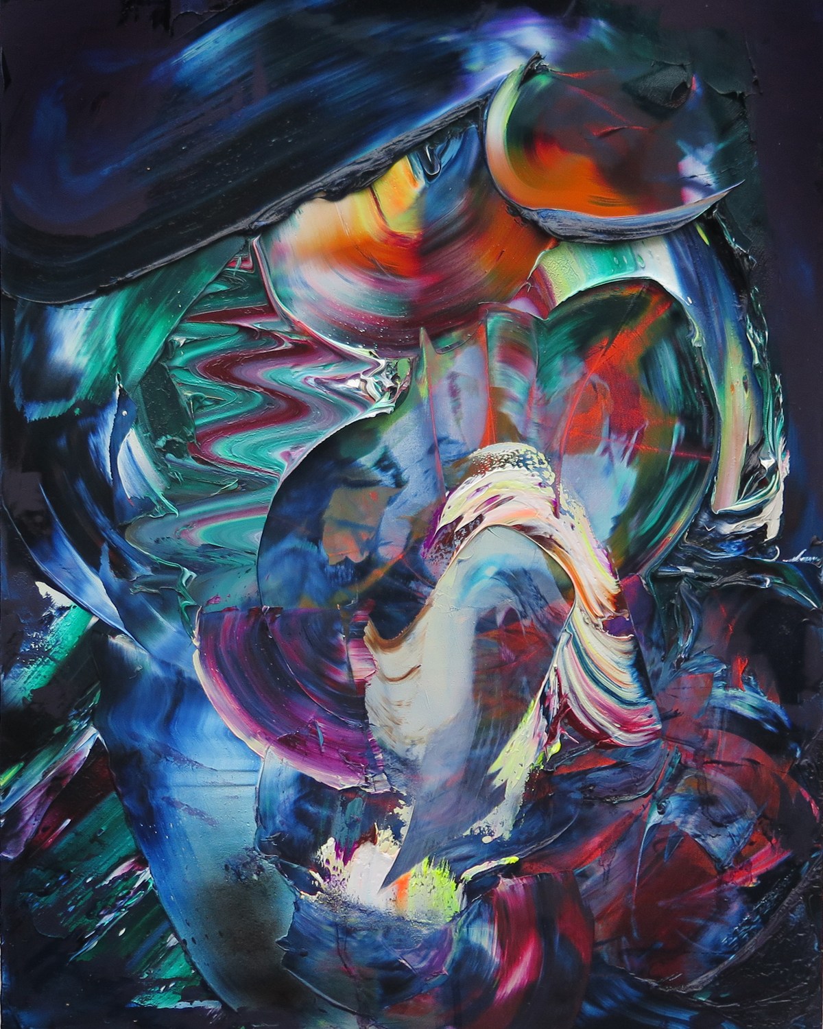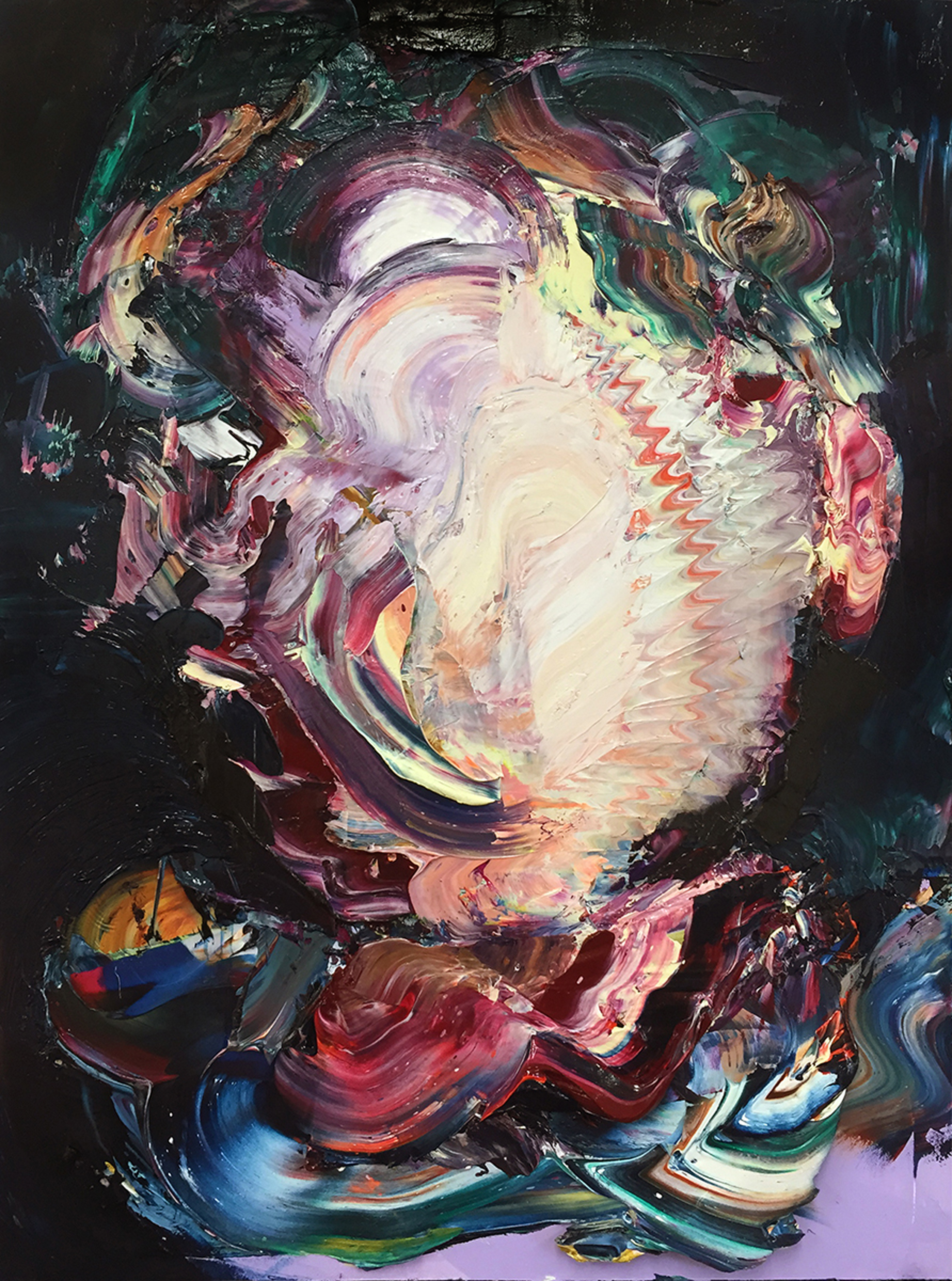 JH: Your paintings ebb between so many dualities- continuity and dissolution, presence and absence, matter and space, anger and passivity, ghost and flesh, death and vitality, abstraction and true form, the ancient and the modern. Why is it important to express these borderlines, how do you do it? Tell me about your process of making…